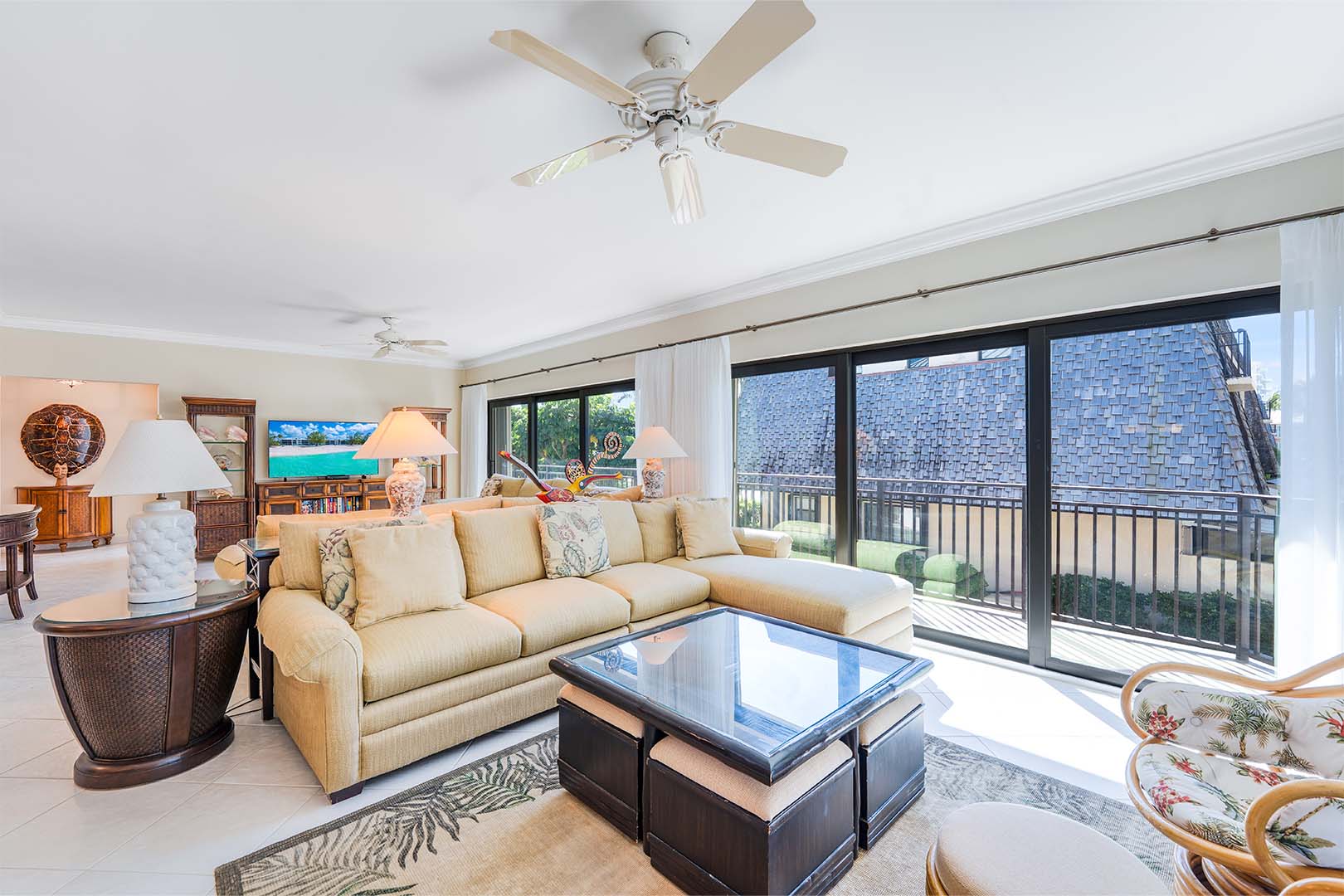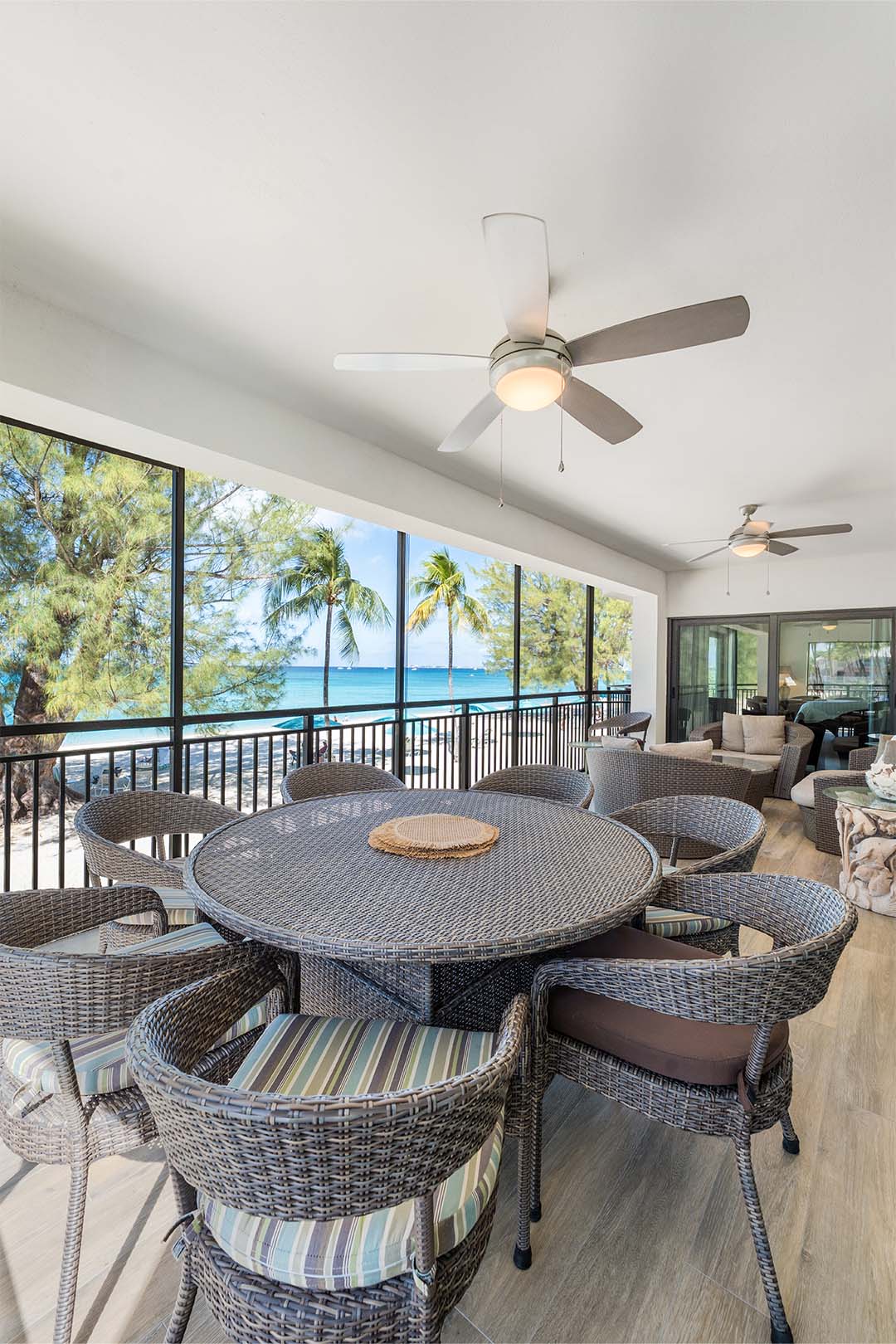 Take in the striking ocean views from the spacious and comfortably furnished screened patio, accessible from either the living room or master bedroom. Separate open air balconies are accessible from the master bedroom and one of the guest bedrooms. Additional amenities include Smart TVs, cable, free Wi-Fi, a laundry room with washer and dryer, dual A/C systems, free local calling, and a dedicated, covered parking stall, all to help you enjoy your relaxing Caribbean escape.